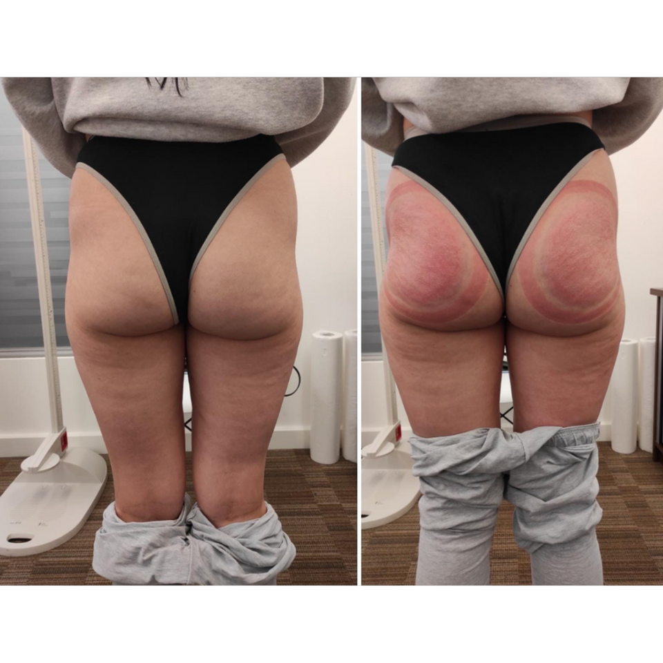 A non-invasive treatment that delivers the equivalent of 12,000 squats in a single session. Vacuum Cup Therapy is applied for 30-40 minutes to stimulate deep muscular engagement, enhance oxygenation, and optimize collagen production. This technique promotes increased volume, refined contouring, and enhanced muscular tonicity, while also facilitating detoxification through the lymphatic system. The result is a naturally lifted, sculpted, and contoured gluteal region with long-lasting improvements in both shape and skin quality.